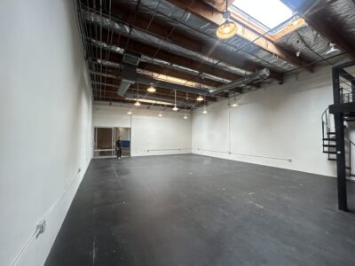 The space features an open layout with polished floors, exposed ceilings, and approximately 16-foot clear heights. This flex space Santa Monica opportunity is ideal for studio, production, R&D, or hybrid office-industrial use.
